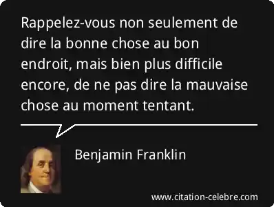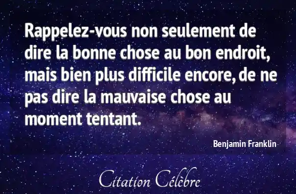 Rappelez-vous non seulement de dire la bonne chose au bon endroit, mais bien plus difficile encore, de ne pas dire la mauvaise chose au moment tentant.