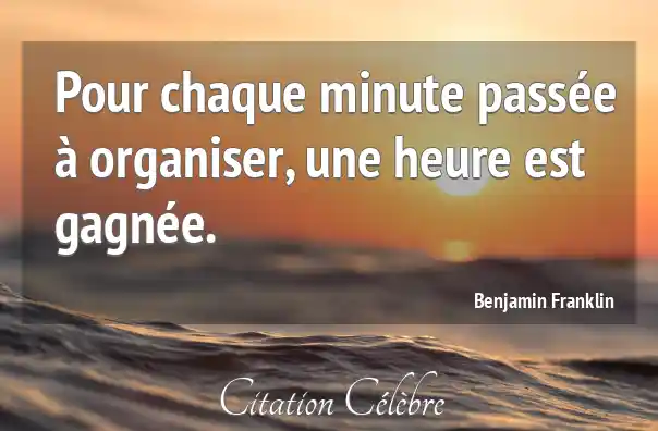 Pour chaque minute passée à organiser, une heure est gagnée.