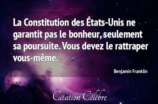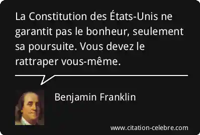 La Constitution des États-Unis ne garantit pas le bonheur, seulement sa poursuite. Vous devez le rattraper vous-même.