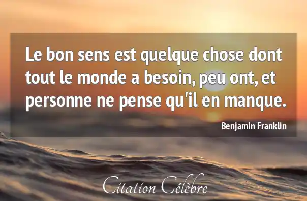 Le bon sens est quelque chose dont tout le monde a besoin, peu ont, et personne ne pense qu'il en manque.