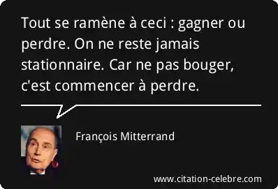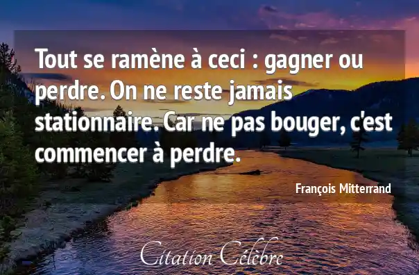 Tout se ramène à ceci : gagner ou perdre. On ne reste jamais stationnaire. Car ne pas bouger, c'est commencer à perdre.