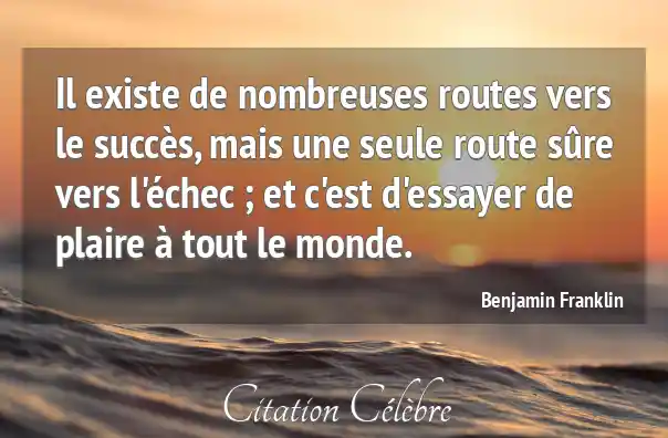 Il existe de nombreuses routes vers le succès, mais une seule route sûre vers l'échec ; et c'est d'essayer de plaire à tout le monde.