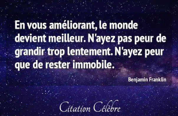 En vous améliorant, le monde devient meilleur. N'ayez pas peur de grandir trop lentement. N'ayez peur que de rester immobile.