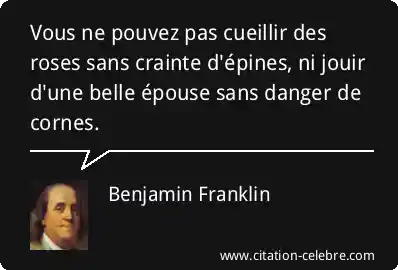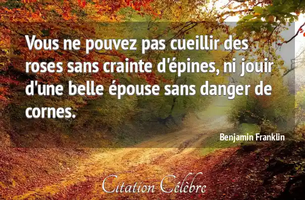 Vous ne pouvez pas cueillir des roses sans crainte d'épines, ni jouir d'une belle épouse sans danger de cornes.