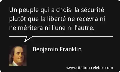 Un peuple qui a choisi la sécurité plutôt que la liberté ne recevra ni ne méritera ni l'une ni l'autre.