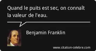 Quand le puits est sec, on connaît la valeur de l'eau.