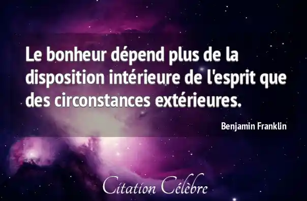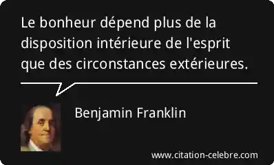 Le bonheur dépend plus de la disposition intérieure de l'esprit que des circonstances extérieures.