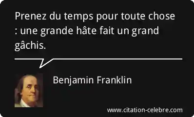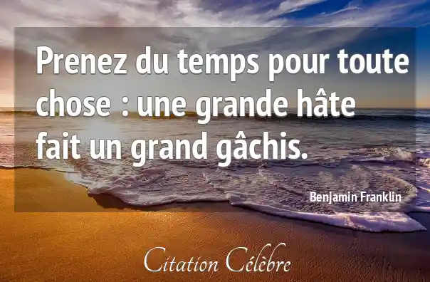 Prenez du temps pour toute chose : une grande hâte fait un grand gâchis.