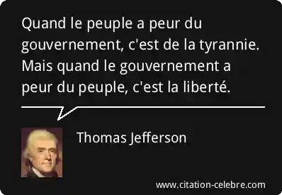 Quand le peuple a peur du gouvernement, c'est de la tyrannie. Mais quand le gouvernement a peur du peuple, c'est la liberté.