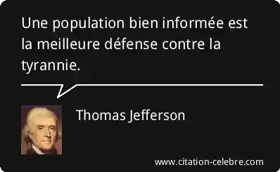 Une population bien informée est la meilleure défense contre la tyrannie.