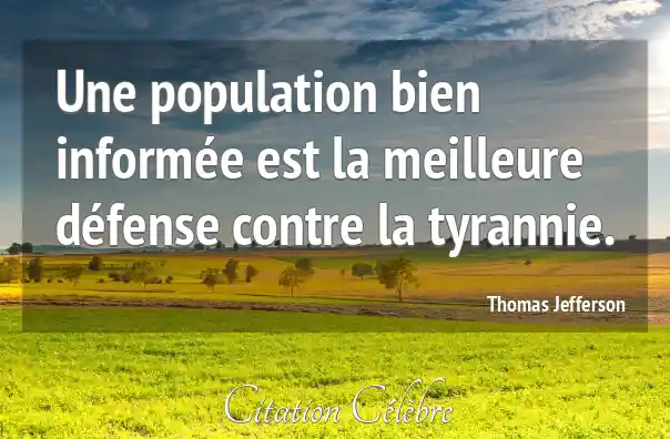 Citation Thomas Jefferson bien : Une population bien informée est la meilleure défense contre la...