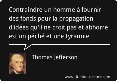 Contraindre un homme à fournir des fonds pour la propagation d'idées qu'il ne croit pas et abhorre est un péché et une tyrannie.
