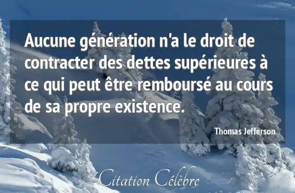 Aucune génération n'a le droit de contracter des dettes supérieures à ce qui peut être remboursé au cours de sa propre existence.