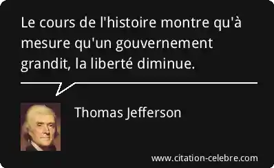Citation Thomas Jefferson liberte : Le cours de l'histoire montre qu'à mesure qu'un gouvernement grandit,...