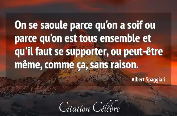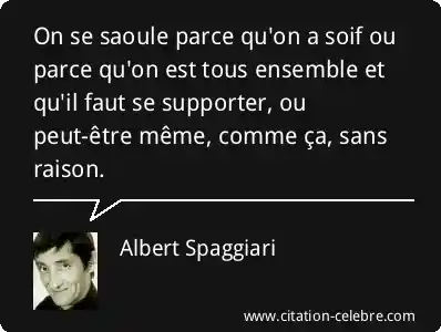 On se saoule parce qu'on a soif ou parce qu'on est tous ensemble et qu'il faut se supporter, ou peut-être même, comme ça, sans raison.