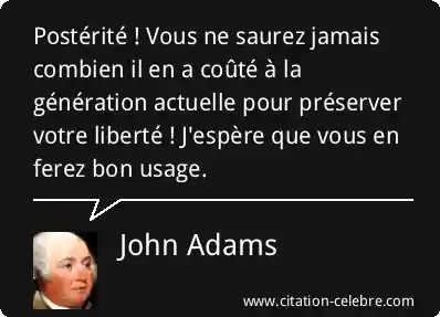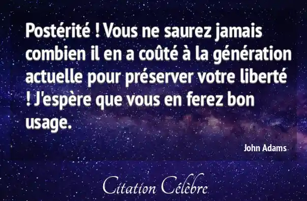 Postérité ! Vous ne saurez jamais combien il en a coûté à la génération actuelle pour préserver votre liberté ! J'espère que vous en ferez bon usage.