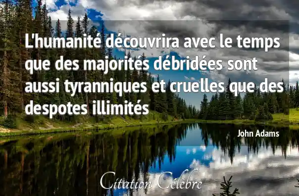 L'humanité découvrira avec le temps que des majorités débridées sont aussi tyranniques et cruelles que des despotes illimités
