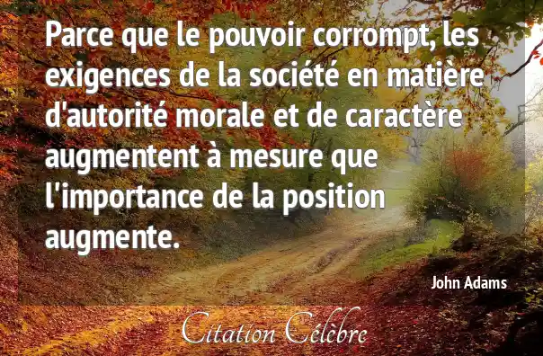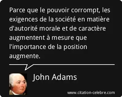 Parce que le pouvoir corrompt, les exigences de la société en matière d'autorité morale et de caractère augmentent à mesure que l'importance de la position augmente.