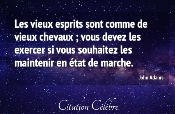 Les vieux esprits sont comme de vieux chevaux ; vous devez les exercer si vous souhaitez les maintenir en état de marche.