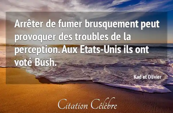Arrêter de fumer brusquement peut provoquer des troubles de la perception. Aux Etats-Unis ils ont voté Bush.