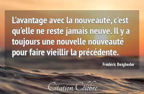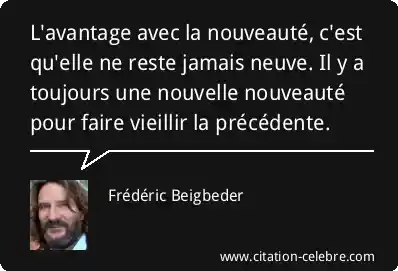 L'avantage avec la nouveauté, c'est qu'elle ne reste jamais neuve. Il y a toujours une nouvelle nouveauté pour faire vieillir la précédente.