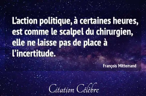 L'action politique, à certaines heures, est comme le scalpel du chirurgien, elle ne laisse pas de place à l'incertitude.