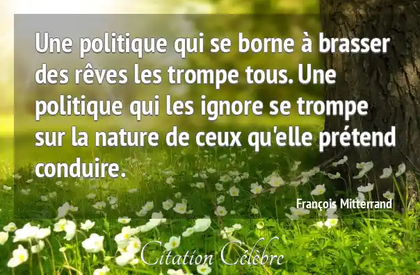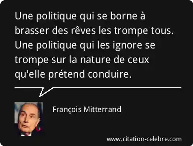 Une politique qui se borne à brasser des rêves les trompe tous. Une politique qui les ignore se trompe sur la nature de ceux qu'elle prétend conduire.