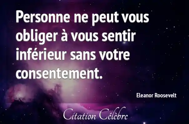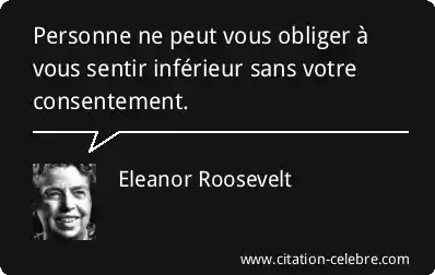 Personne ne peut vous obliger à vous sentir inférieur sans votre consentement.