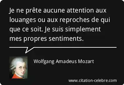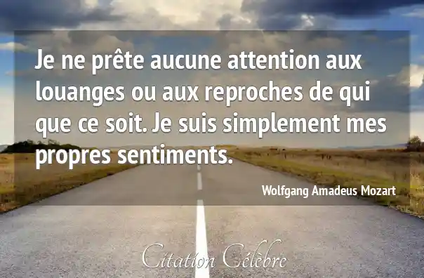 Je ne prête aucune attention aux louanges ou aux reproches de qui que ce soit. Je suis simplement mes propres sentiments.