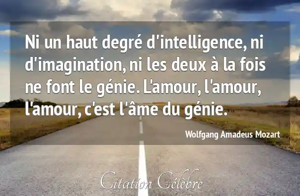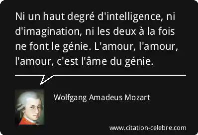 Ni un haut degré d'intelligence, ni d'imagination, ni les deux à la fois ne font le génie. L'amour, l'amour, l'amour, c'est l'âme du génie.