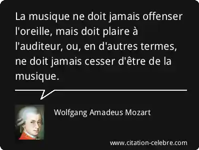 La musique ne doit jamais offenser l'oreille, mais doit plaire à l'auditeur, ou, en d'autres termes, ne doit jamais cesser d'être de la musique.