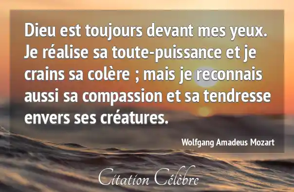 Dieu est toujours devant mes yeux. Je réalise sa toute-puissance et je crains sa colère ; mais je reconnais aussi sa compassion et sa tendresse envers ses créatures.