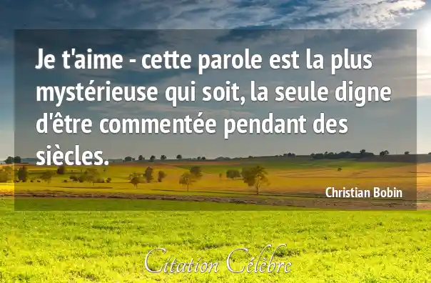 Je t'aime - cette parole est la plus mystérieuse qui soit, la seule digne d'être commentée pendant des siècles.