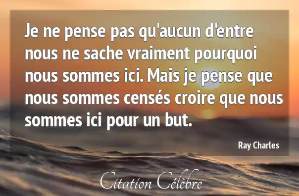 Je ne pense pas qu'aucun d'entre nous ne sache vraiment pourquoi nous sommes ici. Mais je pense que nous sommes censés croire que nous sommes ici pour un but.