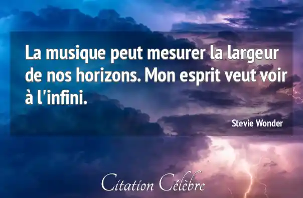 La musique peut mesurer la largeur de nos horizons. Mon esprit veut voir à l'infini.