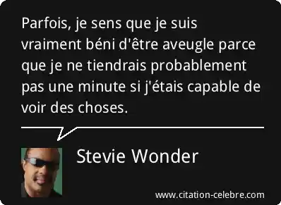 Parfois, je sens que je suis vraiment béni d'être aveugle parce que je ne tiendrais probablement pas une minute si j'étais capable de voir des choses.