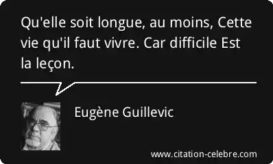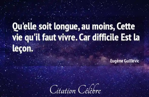 Qu'elle soit longue, au moins, Cette vie qu'il faut vivre. Car difficile Est la leçon.