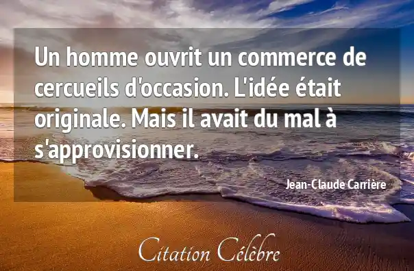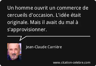 Citation Jean-Claude Carrière homme : Un homme ouvrit un commerce de cercueils d'occasion. L'idée était...