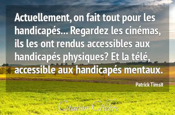 Actuellement, on fait tout pour les handicapés... Regardez les cinémas, ils les ont rendus accessibles aux handicapés physiques? Et la télé, accessible aux handicapés mentaux.