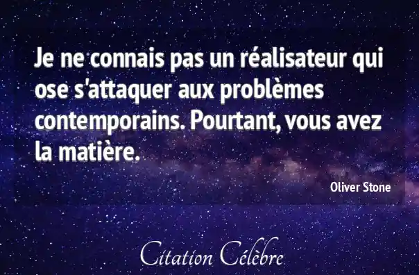 Je ne connais pas un réalisateur qui ose s'attaquer aux problèmes contemporains. Pourtant, vous avez la matière.