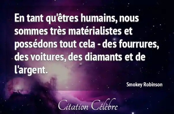En tant qu'êtres humains, nous sommes très matérialistes et possédons tout cela - des fourrures, des voitures, des diamants et de l'argent.