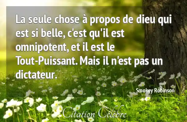 La seule chose à propos de dieu qui est si belle, c'est qu'il est omnipotent, et il est le Tout-Puissant. Mais il n'est pas un dictateur.