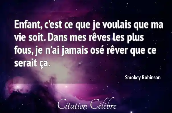 Enfant, c'est ce que je voulais que ma vie soit. Dans mes rêves les plus fous, je n'ai jamais osé rêver que ce serait ça.