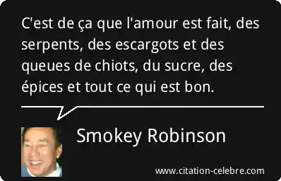 C'est de ça que l'amour est fait, des serpents, des escargots et des queues de chiots, du sucre, des épices et tout ce qui est bon.