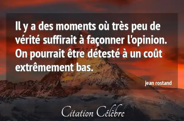 Il y a des moments où très peu de vérité suffirait à façonner l'opinion. On pourrait être détesté à un coût extrêmement bas.