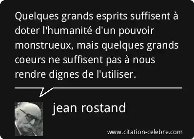 Quelques grands esprits suffisent à doter l'humanité d'un pouvoir monstrueux, mais quelques grands coeurs ne suffisent pas à nous rendre dignes de l'utiliser.
