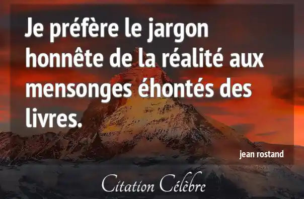 Je préfère le jargon honnête de la réalité aux mensonges éhontés des livres.