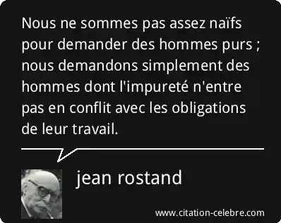 Nous ne sommes pas assez naïfs pour demander des hommes purs ; nous demandons simplement des hommes dont l'impureté n'entre pas en conflit avec les obligations de leur travail.