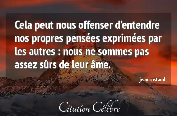 Cela peut nous offenser d'entendre nos propres pensées exprimées par les autres : nous ne sommes pas assez sûrs de leur âme.