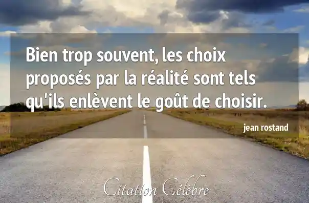 Bien trop souvent, les choix proposés par la réalité sont tels qu'ils enlèvent le goût de choisir.